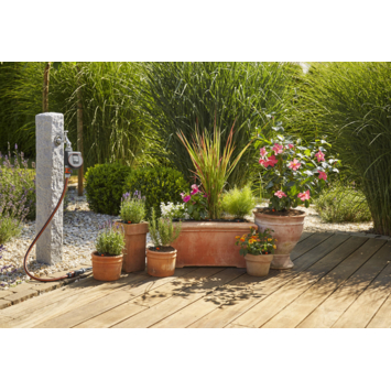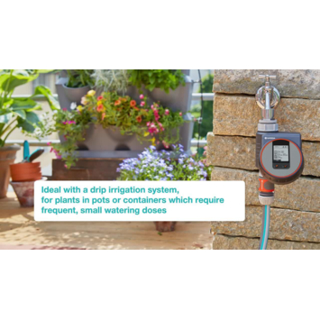 Met de Gardena besproeiingscomputer Flex Control voorzie je de planten op je balkon, dakterras of patio van water. Sluit het apparaat direct aan op de kraan. Door de roterende knop en de duidelijke display is de bediening van het apparaat ook zeer eenvoudig. Je kan de sproeicycli seconden nauwkeurig instellen, hierdoor kan je de Gardena besproeiingscomputer Flex Control ook gebruiken als druppelsysteem. Het is mogelijk om de computer te combineren met de Gardena bodemvochtigheidssensor.