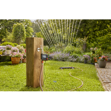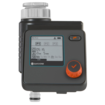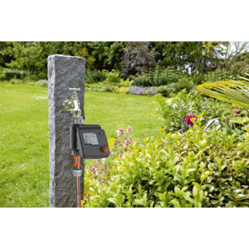 De Gardena besproeiingscomputer Select Control is een digitale besproeiingscomputer om je tuin te bewateren. Op deze computer kan je maximaal drie verschillende planningen instellen. Het apparaat werkt op batterijen en is direct aangesloten op je kraan. Ook het instellen van de Gardena besproeiingscomputer Select Control is makkelijk door de draai- en drukknop en duidelijke display. Voor nog meer precisie kan je de besproeiingscomputer gebruiken in combinatie met een Gardena bodemvochtigheidssensor.