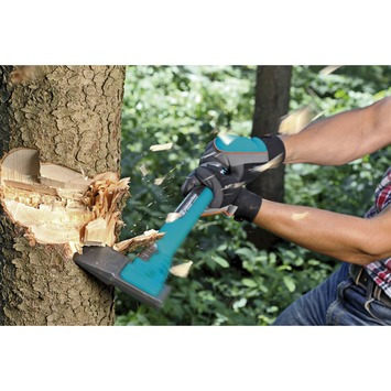 De Gardena universele bijl 1400A is gemaakt voor alle klussen rondom hout (snoeien, omhakken, kloven van (harshoudend) hout). De roestvrij stalen slagbescherming zorgt voor een lange levensduur. De ergonomische gevormde steel met softgrip zorgt voor comfortabele en veilige grip. De bijl is goed in balans en heeft ook een hamerfunctie voor het inslaan van wiggen (geen stalen wiggen).