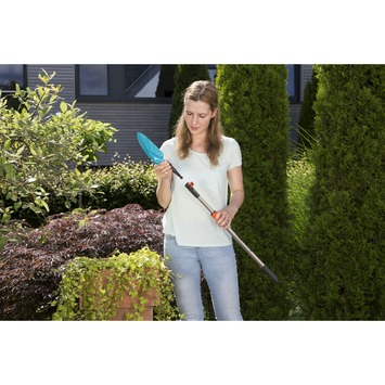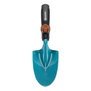 Dit Gardena Combisystem tuinschep heeft een breedte van 8,5 centimeter en is dus uitermate geschikt om plantjes, aarde of bloemen te planten of verplaatsen. De tuinschep ligt comfortabel in de hand door de speciaal vormgegeven handgreep. Je kunt de handgreep vervangen door een Gardena steel van het combisysteem, zo hoef je niet voorover te bukken. De tuinschep is gemaakt van hoogwaardig staal en overtrokken met duroplast, wat bescherming biedt tegen roest.