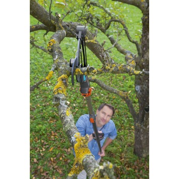 In combinatie met een GARDENA Combisystem telescoopsteel kun je takken vanaf de grond snoeien, zonder ladder.