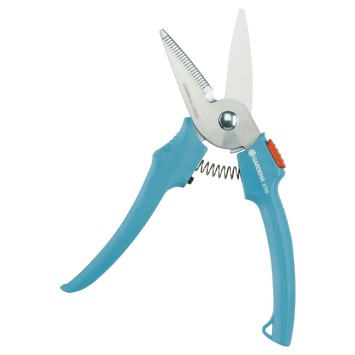 De Gardena Classic 8759 allesknipper is een fantastische aanvulling op jouw tuingereedschap, omdat je het voor verschillende doeleinden kunt gebruiken. Je kunt er bijvoorbeeld takken mee knippen of fruit van de boom plukken. De messen van de gebogen snoeikop zijn van roestvast staal. Het onderste mes is gekarteld, waardoor je extra grip hebt, en heeft een geïntegreerde draadafsnijder. Doordat de handgrepen ergonomisch gevormd zijn, ligt de knipper comfortabel in de hand. Ook op het gebied van veiligheid scoort deze knipper hoog. Met de enkelhandige veiligheidsvergrendeling vergrendel je gemakkelijk de snoeischaar en berg je deze veilig op.
