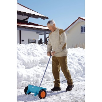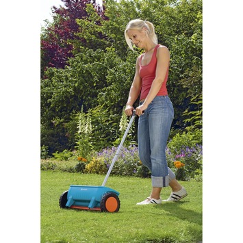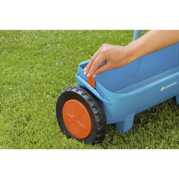 De Gardena Classic strooiwagen 300 10 l is de helpende hand in de tuin voor het strooien van kalk, mest, zaad, zand of zout. De 45 centimeter brede strooiwagen is gemaakt van hoogwaardig kunststof en heeft een inhoud van 10 liter. De strooiwagen kan worden gevuld met strooimateriaal van verschillende afmetingen zoals kalk, mest, zaad, zand of zout. De hoeveelheid mest kan optimaal worden ingesteld met de doseertabel. De elastische strooicilinder zorgt voor een gelijkmatige verdeling. De vrijloopfunctie van de wielen zorgt dat de strooiwagen alleen strooit als de wagen wordt geduwd. Als de wagen naar achter wordt getrokken of wordt gedraaid, wordt er niet gestrooid. De wagen heeft tweewielaandrijving zodat hij soepel rijdt, en dankzij het tractorprofiel hebben de corrosiebestendige kunststof wielen goede grip op verschillende oppervlakken. De Gardena Classic strooiwagen 300 10 liter wordt aanbevolen voor oppervlakken tot circa 300 vierkante meter.