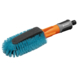 Een borstel met wateraansluiting voor de fiets. Intuïtieve bediening en eenvoudige bediening. De turquoise gekleurde borstelharen worden gebruikt om grof en hardnekkig vuil van het fietsframe te verwijderen, terwijl de spons bijzonder geschikt is voor het reinigen van de gevoeligere onderdelen, zoals de spaken. De wigvorm van de spons zorgt ervoor dat de fietsspaken ideaal bereikt en gereinigd kunnen worden. De spons (art. 18849) kan indien nodig worden vervangen.
