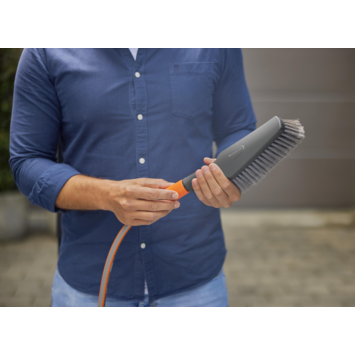 Nauwkeurig en effectief reinigen - zelfs op moeilijk bereikbare plaatsen. De antislip handgreep zorgt voor veilig en stabiel gebruik, terwijl de zachte borstelharen zacht zijn voor gevoelige oppervlakken. Het vlakke en flexibele ontwerp maakt een nauwkeurige reiniging mogelijk, zelfs op moeilijk bereikbare plaatsen. Hoeken en randen zijn niet langer een probleem met de handwasborstel. Sluit hem gewoon met een klik aan op de waterslang om kleine, gevoelige oppervlakken zoals vensterluiken intensief te reinigen.