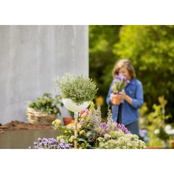Tuinpassie in elk seizoen vind je met de GARDENA ClickUp! FlowerBowl. Til je planten naar het volgende niveau en laat je bloemen in de lucht groeien. Met de combinatie van de ClickUp! Steel en de FlowerBowl, zijn de bloemen een absolute blikvanger. Geplante kruiden of aardbeien kunnen gemakkelijk uit de struik worden geplukt zonder te bukken. De hoogte beschermt tegen ongewenst ongedierte zoals slakken of muizen.