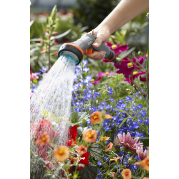 Met de GARDENA Comfort reinigingsbroes schakel je moeiteloos tussen krachtig schoonspuiten en zacht besproeien. Ideaal voor het afspoelen van je tuinmeubelen én het bewateren van planten. De sproeikop stel je simpel af via de draaiknop: van harde straal tot fijne nevel. Dankzij de ergonomische softgrip handgreep en impulshendel werk je comfortabel, ook bij langdurig gebruik. Je kunt de waterstraal zelfs vastzetten met één klik. Gemaakt van stevig materiaal en bestand tegen vorst, dus hij kan gerust buiten blijven. Of je nu vuil verwijdert of bloemen verzorgt: deze broes past zich aan jouw klus aan.