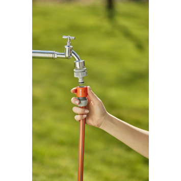 Het 26,5 mm kraanstuk van GARDENA zorgt voor een veilige aansluiting van je tuinslang op de waterkraan. De anti-splash-functie van het kraanstuk is zeer praktisch en zorgt voor een spatvrije gebundelde waterstraal. Het speciale ontwerp van het slangstuk maakt het gemakkelijk en comfortabel te hanteren. Het originele GARDENA systeem biedt een stabiele en waterdichte koppeling tussen alle accessoires en de slang, waardoor het mogelijk is om alle accessoires op de slang aan te sluiten. Het kraanstuk is vorstbestendig en zeer duurzaam. Dit product wordt in Duitsland vervaardigd en GARDENA biedt hierop een fabrieksgarantie van vijf jaar. Dit is het originele GARDENA systeem.