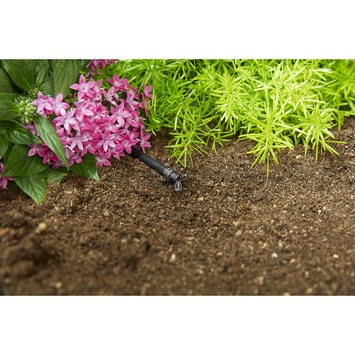 Heb je planten of plantenrijen met ieder hun eigen waterbehoefte in je tuin staan? Kies dan voor de Gardena Micro-Drip einddruppelaar. Dit artikel is onderdeel van het Gardena Micro-Drip-System en levert ongeveer 4 liter water per uur aan je planten. Wil je afzonderlijke planten besproeien, dan moet je de druppelaar in het uiteinde van een apart verkrijgbare verdeelbuis (3/16") draaien. De Einddruppelaar wordt geleverd per 25 stuks, zodat je meerdere planten(rijen) in je gazon kunt voorzien van constant water. Met de meegeleverde reinigingsnaald maak je vervuilde druppelaars eenvoudig schoon. Kortom: een handig hulpmiddel voor planten die een aparte behandeling nodig hebben.