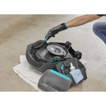 Makkelijk set voor onderhoud van de robotmaaier er zijn verder geen opmerkingen