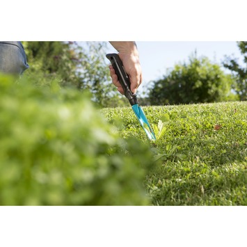 Met de GARDENA onkruidsteker verwijder je moeiteloos onkruid mét wortel uit je tuin. Deze handzame tool is ideaal als je tussen plantenbedden of gazons ongewenste gasten wilt weghalen zonder chemische middelen te gebruiken. Dankzij de werklengte van 14,5 centimeter pak je ook diepere wortels stevig vast, waardoor het onkruid minder snel terugkomt. Het ergonomisch gevormde handvat ligt prettig in de hand en is voorzien van soft-grip elementen. Hierdoor blijft de steker slipvast, zelfs wanneer je trekkende bewegingen maakt in stevige grond. Ook de slimme hoek aan het uiteinde voorkomt dat je hand wegglijdt tijdens het werken. De steker is gemaakt van hoogwaardig kwaliteitsstaal en afgewerkt met een sterke Duroplast coating. Dat betekent een betrouwbare tool die jarenlang meegaat, versterkt met 25 jaar garantie van GARDENA.