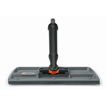 De Gardena raamwasborstel met trekker is ideaal voor het reinigen van glazen oppervlakken. De borstel met trekker kan als handgereedschap worden gebruikt, maar ook op één van de Original Gardena Cleansystem waterstelen worden geschroefd. De borstel, met een werkbreedte van respectievelijk 31 bij 10 centimeter, is flexibel in gebruik. Door het draaischarnier kun je de borstel 360 graden draaibaar, maar kan ook in een stand worden vastgezet. De Gardena raamwasborstel met steel wordt geleverd met een microvezeldoekje, dat verwijderd kan worden en op 60 graden worden gewassen.