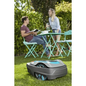 Met de Gardena robotmaaier Smart Sileno City 500 wordt het grasmaaien een fluitje van een cent. De scherpe stalen messen en het SensorCut-systeem maaien jouw gazon nauwkeurig en laten geen streep-of spoorvorming achter. De kleinste sprietjes blijven achter en zorgen zo voor natuurlijke bemesting van je gras. De maaier kan worden gebruikt op een gazon met een maximale oppervlakte van 500 vierkante meter. Dankzij het zwenkbare achterwiel is de maaier erg wendbaar, hellingen tot 25% en smalle doorgangen zijn zodoende eenvoudig te bereiken. De maaier werkt op een stille accu van 18V. Zodra de accu bijna op is, keert de machine vanzelf terug naar zijn laadstation. Dankzij de geluidloze accu kan je gelijk ook genieten van alle rust. De maaier werkt na installatie compleet automatisch. De robotmaaier is met de Smart App op je telefoon te bedienen. Zo kan je extra informatie bekijken of bijvoorbeeld de maaitijden instellen. De maaier rijdt altijd in elk seizoen want de machine kan namelijk tegen regen. Daardoor is die ook met een tuinslang makkelijk te onderhouden. Door de gevoelige botssensoren kan de grasmaaier obstakels herkennen en er zo niet tegen aan rijden. De stalen messen stoppen met draaien zodra de maaier wordt opgetild. Door de beveiliging tegen dieven wordt er om een pincode gevraagd zodra de maaier is opgetild of wordt gestopt. Een onjuiste pincode veroorzaakt een alarm. Kortom, met de Gardena robotmaaier Smart Sileno City 500 heb je altijd een uitstekend verzorgd gazon zonder enige moeite.