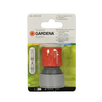 Dit Gardena slangstuk kan simpel en snel met verbonden worden met de slang. Het stuk kan ook eenvoudig worden losgekoppeld door eraan te trekken. Het slangstuk is geschikt voor 19 millimeter (3/4") en 16 millimeter (5/8") slangen.