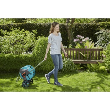 Met de Gardena AquaRoll M is het ruimtebesparend opslaan en het gebruiken van de tuinslang zeer eenvoudig. Door de ergonomische slinger met zachte kunststof componenten gaat het oprollen van de slang erg gemakkelijk. De slang is uitgerust met Original GARDENA System onderdelen en de tuinspuit hangt aan de handige vasthoudclip boven op het frame. Optimale vorstbestendigheid en 5 jaar garantie garanderen maximale kwaliteit.