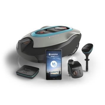 De smart system set van Gardena bevat alle smart producten voor een perfect en automatisch gazononderhoud en efficiënt besproeiing in uw tuin.