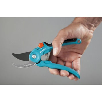 De Gardena snoeischaar Classic standaard heeft een antikleefcoating op het bovenmes en een ondermes van roestvrij staal. Daardoor is hij optimaal geschikt voor het knippen van bloemen, jonge scheuten en takken. De ergonomisch gevormde handgrepen zijn regelbaar in twee stappen en de bovenste handgreep heeft extra zachte componenten die maximaal comfort bieden tijdens het snoeien.