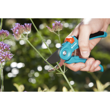 De Gardena Classic snoeischaar heeft een antikleefcoating op het bovenmes en een ondermes van roestvrij staal. Hierdoor is de snoeischaar ideaal om bloemen en jonge scheuten te snoeien. De ergonomische handgreep met softgrip zorgt voor maximaal comfort tijdens het snoeien. Met praktische éénhandsvergrendeling om veilig op te bergen.