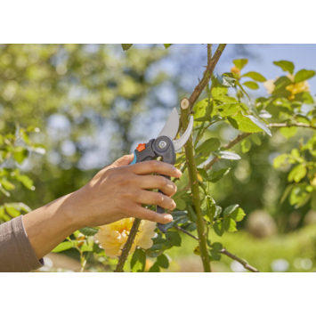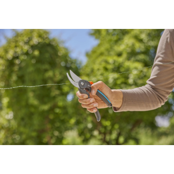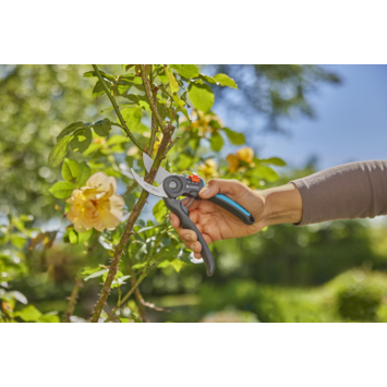 Sterke prestaties - eenvoudig te hanteren. De slimme oplossing voor moeiteloos snoeien, de GARDENA Snoeischaar PremiumCut Flex levert prestigieuze snoeikracht met een snoeidiameter van 24 mm, draadsnijder, sapgroef, PowerCoating en een variabele opening in 2 stappen voor comfort, ongeacht de grootte van de hand. Intuïtieve ergonomie Deze snoeischaar is handig en draagbaar en biedt veel snoeikracht in een lichtgewicht en comfortabel pakket. Met GARDENA's ergonomisch soft-grip handgreep is hij ontworpen voor het comfort van de gebruiker, waardoor de belasting op de handen wordt geminimaliseerd voor snoeien zonder vermoeidheid. De handgrepen zijn versterkt met glasvezel voor extra stabiliteit en zijn gemaakt van 45% gerecyclede kunststof. De 2-staps variabele opening biedt een groot gebruikscomfort voor alle handgroottes. Netjes en precies snoeien De GARDENA Snoeischaar PremiumCut Flex biedt een krachtige snoeiervaring voor jong hout, bloemen en scheuten. De scherpe precisiegeslepen messen hebben een snoeidiameter van 24 mm en zijn voorzien van GARDENA's PowerCoating voor gezonde planten, eenvoudig schoonmaken en langdurige bescherming. Sterke snoeikracht Deze messen zijn gemaakt van hoogwaardig staal voor moeiteloos snoeien. Langdurige scherpte Deze PremiumCut Flex Snoeischaar wordt in Duitsland gemaakt volgens de strenge normen van GARDENA. Hij is ontworpen voor langdurige snoei-efficiëntie en een lange levensduur zonder zorgen Eenvoudig opbergen en veiligheidsfuncties De handgrepen van deze snoeischaar hebben een ophanglus voor makkelijk en handig opbergen. De PowerCoated messen vergrendelen in de gesloten stand wanneer ze niet gebruikt worden, voor jouw veiligheid en gemak.