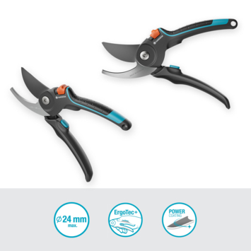 Sterke prestaties - eenvoudig te hanteren. De slimme oplossing voor moeiteloos snoeien, de GARDENA Snoeischaar PremiumCut Pro Jong Hout, heeft een snoeidiameter van 24 mm, een beschermende polsbuffer, een veiligheidssluiting die met één hand te bedienen is, een borgveer en de kenmerkende PowerCoating van GARDENA. Intuïtieve ergonomie Deze eersteklas snoeischaar is handig en draagbaar en biedt veel snoeikracht in een lichtgewicht en comfortabel pakket. Met GARDENA's ergonomische 2K soft-grip handgreep is hij ontworpen voor het comfort van de gebruiker, waardoor de belasting op de handen wordt geminimaliseerd voor snoeien zonder vermoeidheid. De handgrepen zijn versterkt met glasvezel voor extra stabiliteit en zijn gemaakt van 40% gerecyclede kunststof. Netjes en precies snoeien De GARDENA Snoeischaar PremiumCut Pro Jong Hout maakt het snoeien van droge houtachtige twijgen en takken een krachtige snoeiervaring. De scherpe precisiegeslepen messen hebben een snoeidiameter van 24 mm en zijn voorzien van GARDENA's PowerCoating voor gezonde planten, eenvoudig schoonmaken en langdurige bescherming. Bypass-snoeien wil zeggen dat de messen elkaar passeren en sluiten zoals een schaar. Dit zorgt voor een schonere snede met minder kneuzingen en pletten van de tak of twijg. Sterke snoeikracht Deze messen zijn gemaakt van hoogwaardig staal voor moeiteloos snoeien. Langdurige scherpte Deze PremiumCut Pro Snoeischaar Jong Hout wordt in Duitsland gemaakt volgens de strenge normen van GARDENA. Hij is ontworpen voor langdurige snoeiefficiëntie en een lange levensduur zonder zorgen. Eenvoudig op te bergen en veiligheidsfuncties De handgrepen van deze snoeischaar zijn voorzien van een ophanglus voor makkelijk en handig opbergen. De PowerCoated messen zijn voorzien van een veiligheidssluiting met één hand, waardoor je de messen eenvoudig in de gesloten stand kan vergrendelen als je ze niet gebruikt, voor meer veiligheid en gemak.