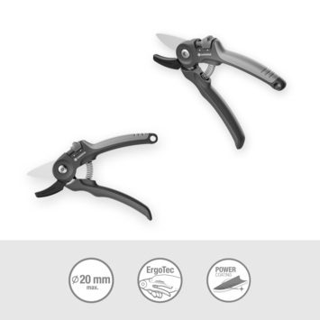 Sterke prestaties - eenvoudig te hanteren. GARDENA Snoeischaar PremiumCut Droog Hout is de slimme oplossing voor moeiteloos knippen en brengt prestigieuze snoeikracht in je handpalm, 20 mm snoeidiameter en GARDENA's beschermende PowerCoating. Intuïtieve ergonomie Deze handzame snoeischaar is handig en draagbaar en biedt veel snoeikracht in een lichtgewicht en comfortabel pakket. Met GARDENA's ergonomische soft grip handgreep is hij ontworpen voor het comfort van de gebruiker, waardoor de belasting op de handen wordt geminimaliseerd voor snoeien zonder vermoeidheid. De handgrepen zijn versterkt met glasvezel voor extra stabiliteit en zijn gemaakt van 40% gerecyclede kunststof. Netjes en precies snoeien De GARDENA Snoeischaar PremiumCut Droog Hout maakt het snoeien van droge houtachtige twijgen en takken een krachtige snoeiervaring. De scherpe precisiegeslepen messen hebben een snoeidiameter van 20 mm en zijn voorzien van GARDENA's PowerCoating voor gezonde planten, eenvoudig schoonmaken en langdurige bescherming. Sterke snoeikracht Deze messen zijn gemaakt van hoogwaardig staal voor moeiteloos snoeien. Langdurige scherpte Deze GARDENA Snoeischaar PremiumCut Droog Hout met aambeeld-snede wordt in Duitsland gemaakt volgens de strenge normen van GARDENA. Hij is ontworpen voor langdurige snoei-efficiëntie en een lange levensduur zonder zorgen Eenvoudig opbergen en veiligheidsfuncties De handgrepen van deze snoeischaar hebben een ophanglus voor makkelijk en handig opbergen. De PowerCoated messen vergrendelen in gesloten stand wanneer ze niet gebruikt worden, voor jouw veiligheid en gemak.