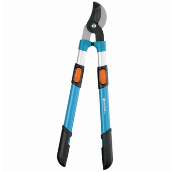 GARDENA Comfort telescoop-takkenschaar 650 BT Meer reikwijdte, meer hefboomkracht. Tweezijdig snijdende takkenschaar met telescopische aluminium hefboomarmen (+ 25 cm). Ideaal voor jong hout. De speciaal gevormde messen houden het snoeigoed in het optimale knipbereik voor een lichte, zuivere snit. Precisiegeslepen messen met antikleefcoating. Eenvoudig schoon te maken en onderhoudvrij. Dubbele aanslagdemper ontziet de gewrichten. Ergonomisch gevormde handgrepen om comfortabel te werken en goede grip. 25 jaar garantie. Producthanger met 4-kleuren infokaart. Totale lengte: 650-900 mm. Max. te knippen tak-Ø: ca. 42 mm.