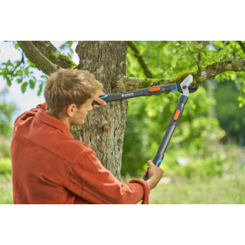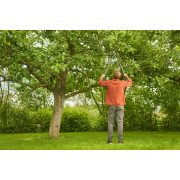 Sterke prestaties - eenvoudig te hanteren, de slimme oplossing voor moeilijk te bereiken takken. Met hoogwaardige precisiegeslepen messen, 50 mm snoeidiameter, ergonomisch ontwerp, polsbuffer en een maximale uitschuiflengte van 900 mm maakt de GARDENA TeleCut Pro L telescopische takkenschaar korte metten met hoge jonge houttakken. Krachtige snoeikracht De GARDENA Takkenschaar TeleCut Pro L is uitgerust met precisiegeslepen kwaliteitsstalen messen en maakt gebruik van hefboomwerking voor een krachtige snijkracht en minder belasting voor de gebruiker bij het knippen van jonge houttakken. Intuïtieve ergonomie De GARDENA TeleCut Pro telescopische boomschaar is ergonomisch ontworpen en licht van gewicht, en heeft ergonomische aluminium handgrepen voor comfortabel en moeiteloos snoeien van jong hout. De ingebouwde polsbuffer voorkomt belasting van de pols tijdens het snoeien, waardoor de gewrichten van de gebruiker beschermd worden en het comfort verbeterd wordt. Net en precies snoeien De precisiegeslepen messen van kwaliteitsstaal zorgen voor een zuivere en precieze snede die kneuzingen en schade aan jonge houttakken minimaliseert, voor efficiënter knippen en gezondere planten. De messen zijn behandeld met GARDENA's PowerCoating. Hierdoor zijn ze beschermd tegen corrosie, eenvoudig schoon te maken en snoeien ze efficiënter dankzij minder wrijving. Langdurige scherpte De precisiegeslepen messen van deze GARDENA Takkenschaar TeleCut Pro L worden in Duitsland gemaakt volgens de hoge normen van GARDENA en zijn ontworpen voor een langdurige scherpte en snoei-efficiëntie voor een lange levensduur zonder zorgen.