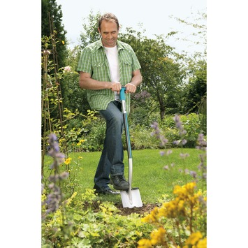 De Gardena Terraline spade maakt graven een prettige bezigheid. Vanwege de Softec schokdemping vermindert de terugslag wanneer je de spade in de grond steekt. Verder is deze spade voorzien van een extra brede tweehandsgreep zodat je de spade stevig in de hand hebt. Het druppelvormige steelprofiel voorkomt dat de steel in je handen draait, dit maakt de spade een stuk veiliger. Door de brede voetsteun glijd je voet niet weg wanneer je druk zet. De steel ligt prettig in je hand. Het blad van de spade is gemaakt van kwaliteitsstaal waardoor deze lang mee gaat.