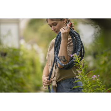 De Textielslang Liano™ Xtreme 15 m Set van GARDENA is meteen klaar voor gebruik. De duurzame Liano™ Xtreme is geschikt voor kleinere tuinen. Gebruik hem voor dagelijkse klusjes, maar ook voor uitdagende en langdurige bewatering. De set bestaat uit de 15 m lange slang met een diameter van 13 mm (1/2"), de voorgemonteerde Original GARDENA System-onderdelen: het Liano™ Slangstuk, de Liano™ Waterstop, twee Kraanstukken en een Sproeibroes. Een van de kraanstukken bevat een reduceerstuk, zodat je hem kan gebruiken voor in totaal drie verschillende kraanmaten. De slang bestaat uit een zeer flexibele PVC-binnenslang met optimale prestaties, terwijl de innovatieve buitenslang gemaakt van extreem duurzaam textiel de Liano™ Xtreme een lange levensduur geeft. Dankzij zijn buitengewone eigenschappen is de innovatieve Liano™ Xtreme speciaal ontworpen voor uitdagende tuinsituaties. Hij is zeer stevig, vuilafstotend en kan makkelijk tegen ruig terrein zoals keien, rozendoorns of slepen langs huismuren. Dankzij zijn uitstekende flexibiliteit is de tuinslang makkelijk over de grond te trekken en knikt hij niet. Daarnaast is zijn aangename oppervlak comfortabel in gebruik. Nog een voordeel van de Liano™ Xtreme is zijn tot wel 50% lager gewicht ten opzichte van gebruikelijke PVC-slangen. Dit maakt bewatering met de slang makkelijk, zelfs na langere tijd. De flexibiliteit van de Liano™ Xtreme laat je hem ook op een ruimtebesparende manier opslaan, doordat hij ideaal aan te passen is aan de beschikbare opbergruimte. De slang is bestand tegen een maximale druk van 35 bar. Dankzij de uv- en vorstbestendigheid kan hij het hele jaar door buiten blijven. De Liano™ Xtreme is vrij van schadelijke stoffen zoals ftalaten (<0,1%), maar ook cadmium, lood en barium (<0,1%). Het kwaliteitsproduct de Textielslang Liano™ Xtreme is gemaakt in Europa en ondersteund door GARDENA met een fabrieksgarantie van 30 jaar als je hem binnen 3 maanden na aankoop registreert via gardena.com/registration. Ontwikkeld voor het extreme. Ontworpen voor het alledaagse. Liano™ Textielslangen.