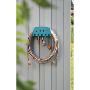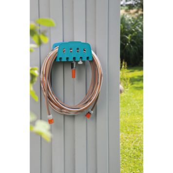 De Gardena tuinslanghouder kunststof is een handige hulp voor het eenvoudig ophangen van een tuinslang. Het handige aan deze tuinslanghouder is de mogelijkheid om aan de onderzijde bijvoorbeeld een spuitpistool of broes op te hangen. Zo heb je altijd al je Gardena tuinsproeiartikelen bij elkaar.
