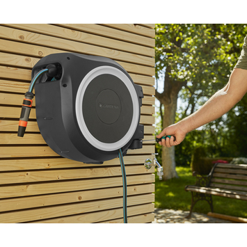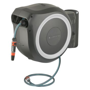De Gardena wandslangenbox 25 meter maakt het bewateren van je tuin eenvoudig, de slang van 25 meter rolt automatisch op nadat je een korte ruk aan de slang geeft. De geïntegreerde slangegeleider zorgt ervoor dat de slang altijd goed oprolt en voorkomt knikken in de slang. Hierdoor kun je de slang altijd zonder problemen gebruiken.