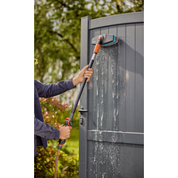 De Gardena wasborstel 5570-20 met waterdoorvoer via original Gardena systeemaansluiting heeft een paardenharen borstel waar u kwetsbare oppervlakten voorzichtig maar effectief mee kunt reinigen. De borstel is draaibaar, hierdoor creëert er een werkbreedte van 13 cm tot 27 cm.