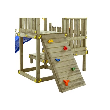 De klimwand voor het speeltoestel Piraat is gemaakt van kwalitatief hoogwaardig geselecteerd duurzaam vurenhout.