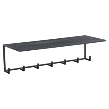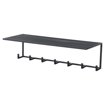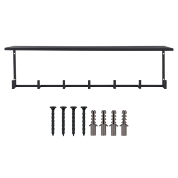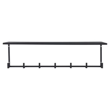 Garderoberek Ivy is uitgevoerd in zwart gepoedercoat staal. Het model is voorzien van een half open, gerasterde hoedenplank en heeft 5 haken. Deze multifunctionele kapstok heeft een afmeting van 55x20cm.