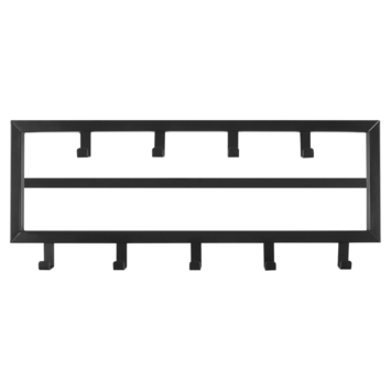 Deze industriele en moderne wandkapstok beschikt over 9 haken en is van metaal en vervolgens zwart afgewerkt.