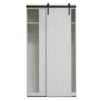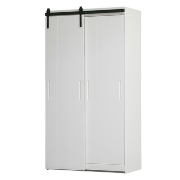 De WOOOD schuifdeurkast Luuk (hxbxd) 218x115x62 cm is een echt stoere, eigentijdse kledingkast met 2 schuifdeuren. De 2 schuifdeuren hebben een verticale V-groef lijn en dit gecombineerd met de zwart metalen schuifsysteem accenten van de kast Luuk, geven deze garderobekast een stoere, moderne en industriële uitstraling. De kast bestaat standaard uit een leggedeelte over de gehele breedte van de kast en hanggedeelte inclusief een roede. De kast is gemaakt van massief FSC gecertificeerd grenen hout met uitzondering van de legplanken, binnenwanden, bodem- en bovenplaat; deze zijn van spaanplaat bekleed met witte folie en de achterwand is van wit gelakt hardboard. Kast Luuk is zo geconstrueerd dat deze is uit te breiden door middel van het koppelen van één of meerdere Luuk garderobekasten. Er is voor deze Luuk kast ook een uitbreidingspakket beschikbaar, waarmee je meer legruimte in de kast kunt creëren.