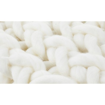 Gebreide plaid XL garen, Wit, 150x100 cm. Op Pinterest een hit, nu bij Karwei. De grof gebreide plaid brengt letterlijk wat warmte in huis. De grove lont-garen voelt heerlijk zacht aan. Leg de deken opgevouwen als kussen op de bank en heb deze bij de hand voor als het wat frisser is. Dit plaid gaat na verloop van tijd leven dit betekend dat hij kan gaan pillen en pluizen.
