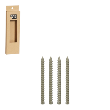 Deze trendy Twist dinerkaarsen geven elke kandelaar een bijzondere uitstraling. Zeker in combinatie met de donkergroene kleur! Erg leuk om in de avond aan te steken, maar ook overdag erg mooi als decoratie. De set bestaat uit vier kaarsen met een afmeting van H18 x Ø1,4 cm.