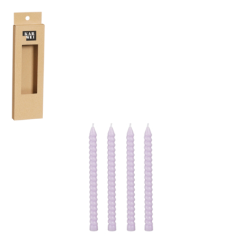 Deze trendy Twist dinerkaarsen geven elke kandelaar een bijzondere uitstraling. Zeker in combinatie met de lila kleur! Erg leuk om in de avond aan te steken, maar ook overdag erg mooi als decoratie. De set bestaat uit vier kaarsen met een afmeting van H18 x Ø1,4 cm.