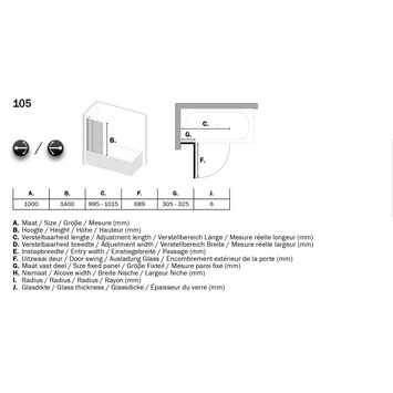 De 105 serie biedt volop voordelen. Het profielarme design in een hoogwaardige hoogglans afwerking past in iedere badkamer. Alle deuren scharnieren op de muur, wat een bijzonder ruime instap oplevert. Of je nu kiest voor een losse deur of inloopdouche, een complete cabine, een praktische badwand of juist een combinatie? Je vindt het in de 105 serie van Get Wet by Sealskin.