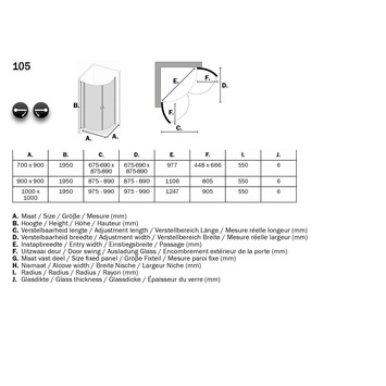 De 105 serie biedt volop voordelen. Het profielarme design in een hoogwaardige hoogglans afwerking past in iedere badkamer. Alle deuren scharnieren op de muur, wat een bijzonder ruime instap oplevert. Of je nu kiest voor een losse deur of inloopdouche, een complete cabine, een praktische badwand of juist een combinatie? Je vindt het in de 105 serie van Get Wet by Sealskin. De swingdeur in nis is eenvoudig tussen 2 muren te plaatsen en zowel links als rechts te monteren.
