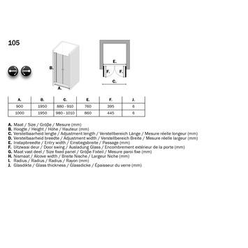 - Verstelbaarheid buitenzijde profiel 990-1005 mm