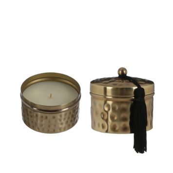 De kaars in het goudkleurige blikje verspreidt een heerlijke geur. Met het deksel weer op het metalen blikje blijft de geur behouden en is de kaars klaar voor een volgend gebruik. Niets is zo gezellig als kaarslicht want dit zorgt voor de mooiste accenten in het huis.