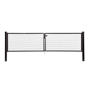 De Giardino dubbele tuinpoort Napoli RAL 9005 zwart is de perfecte aanvulling voor je tuinhek. Deze dubbele poort bestaat uit twee panelen, elk 150 cm hoog en 200 cm breed, en heeft een zwarte kleur. Gemaakt van gehard staal en gecoat, waardoor de poort bestand is tegen alle weersomstandigheden. De installatie is eenvoudig en je ontvangt stevige poten, een klink en een sleuteltje bij de poort. Voor andere opties zijn er ook enkele poorten beschikbaar in verschillende hoogten en kleuren, uitsluitend in onze webshop.