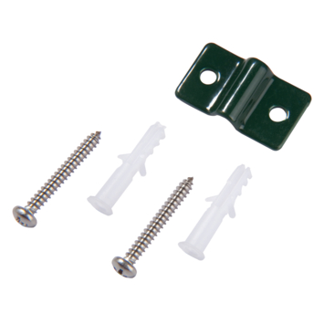 Met de Giardino muurbevestiging voor draadpaneel RAL 6005 groen, 4 stuks, heb je alles wat je nodig hebt om draadpanelen stevig aan de muur te bevestigen. De set bevat de benodigde schroeven en een bevestigingplaatje. De groene kleur van de bevestigingen sluit naadloos aan bij je draadpanelen. Deze set is alleen online verkrijgbaar bij Karwei.