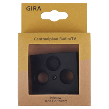 De centraalplaat radio/tv wordt gebruikt om het universeel radio/tv basiselement af te dekken. De afdekkingsplaat met afdekraam maakt de combinatie compleet. De centraalplaat past binnen de Gira E2 serie en heeft de kleur mat zwart.