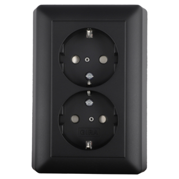 Met de Gira E2 Dubbel Geaard Stopcontact Mat Zwart kun je elektrische apparaten voorzien van stroom. De aarde zorgt ervoor dat, in geval van kapotte- of losgeschoten bedrading in een apparaat (bv. wasmachine of computer), de metalen delen niet onder stroom komen te staan, de stroom wordt dan via een extra aardedraad in de aarde geleid.