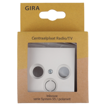De centraalplaat radio/tv wordt gebruikt om het universeel radio/tv basiselement af te dekken. De afdekkingsplaat met afdekraam maakt de combinatie compleet. De centraalplaat past binnen de Gira ST55 serie en heeft de kleur wit.