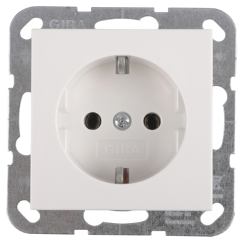 Op de Gira ST55 wandcontactdoos kun je een apparaat of lamp aansluiten. De wandcontactdoos is wit gekleurd en geaard.