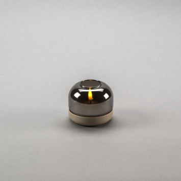 Glaslantaarn, smoke, zwarte basis, 7.5x8.5cm, 6u timer, op batterij 2xAA (excl), voor binnen